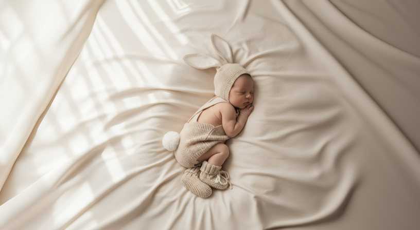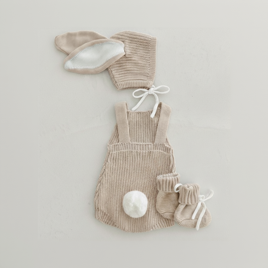 Delicado, atemporal e cheio de encanto, o kit coelhinho deixa os primeiros meses do bebê ainda mais especiais. Produzido em tricô premium macio, oferece conforto sem pesar, ideal para ensaios, saídas e momentos inesquecíveis em família.