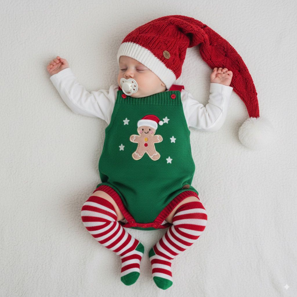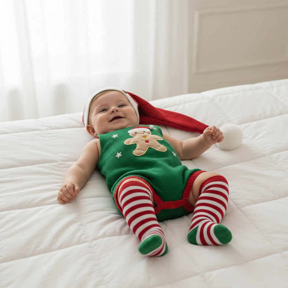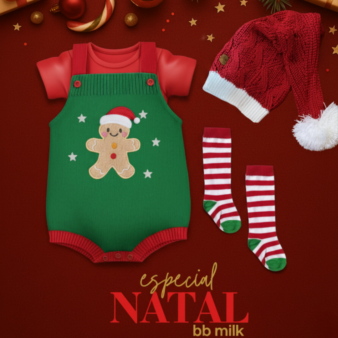 Romper em Tricot Bolacha de Natal – um modelo exclusivo que traz a magia natalina em cada detalhe. Produzido em tricot macio e antialérgico, garante conforto e aconchego para o bebê, além de muito charme nas celebrações de fim de ano.