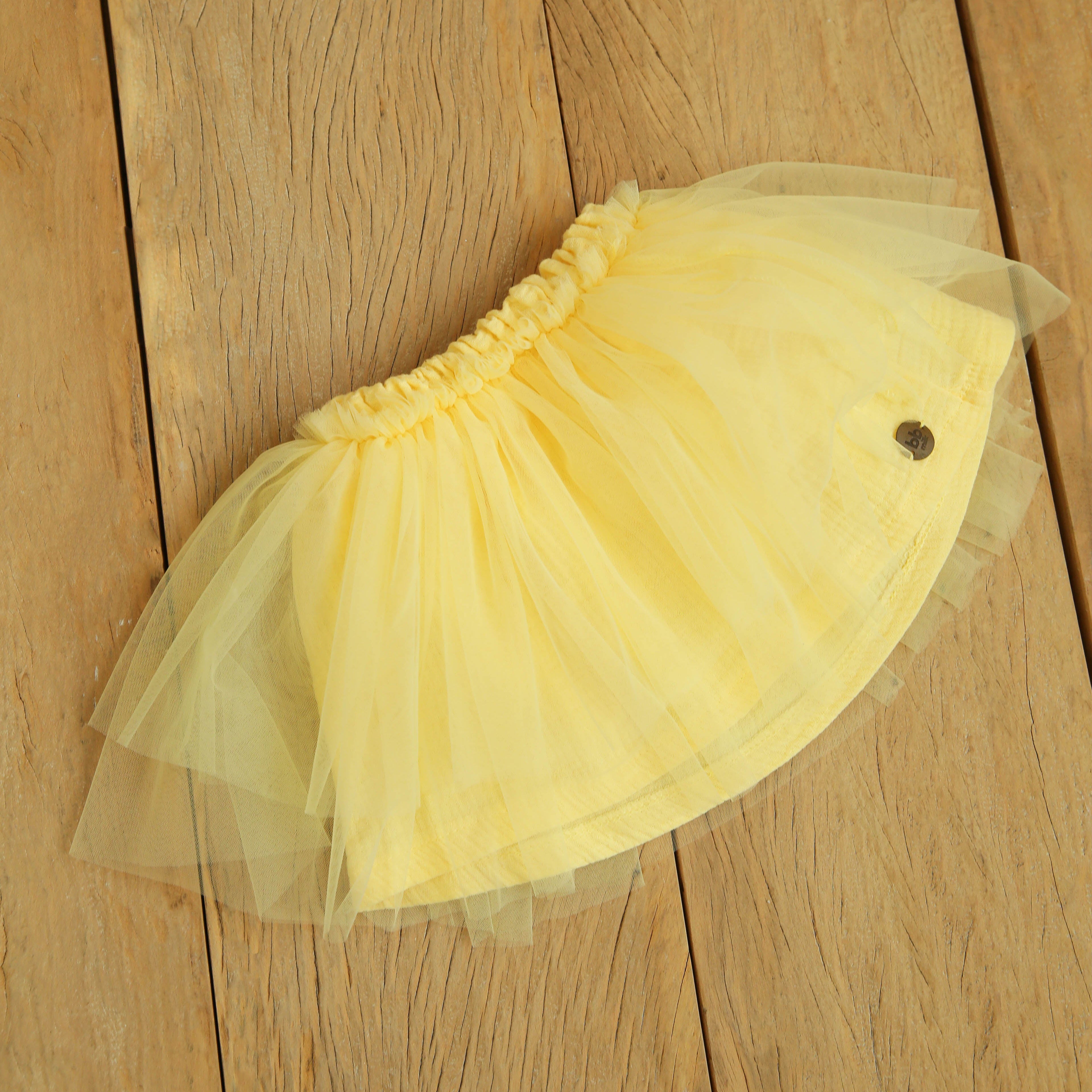 Saia de Tule com Forro em Gaze - Amarelo Manteiga