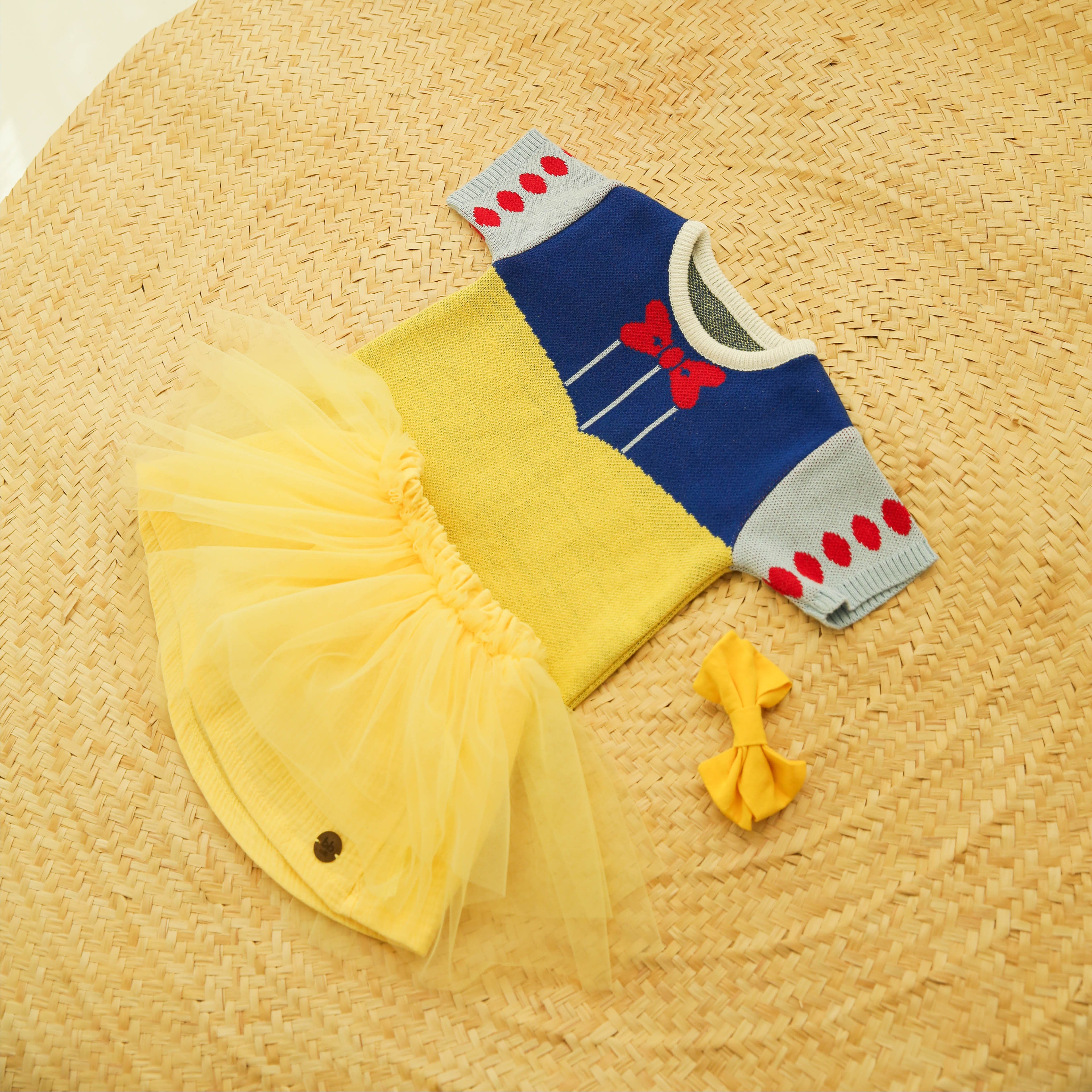 Disponível nos tamanhos 1 ano, 2 anos e 3 anos, essa saia combina lindamente com a nossa camiseta em tricô Branca de Neve, criando um look delicado, sofisticado e cheio de encanto.