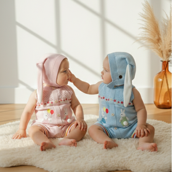Acessório perfeito para deixar os pequenos ainda mais fofos! Nossa touca de coelhinho em tricô é macia, confortável e cheia de charme. Feita com material de alta qualidade, possui orelhinhas longas e maleáveis, garantindo um toque lúdico e delicado ao visual.